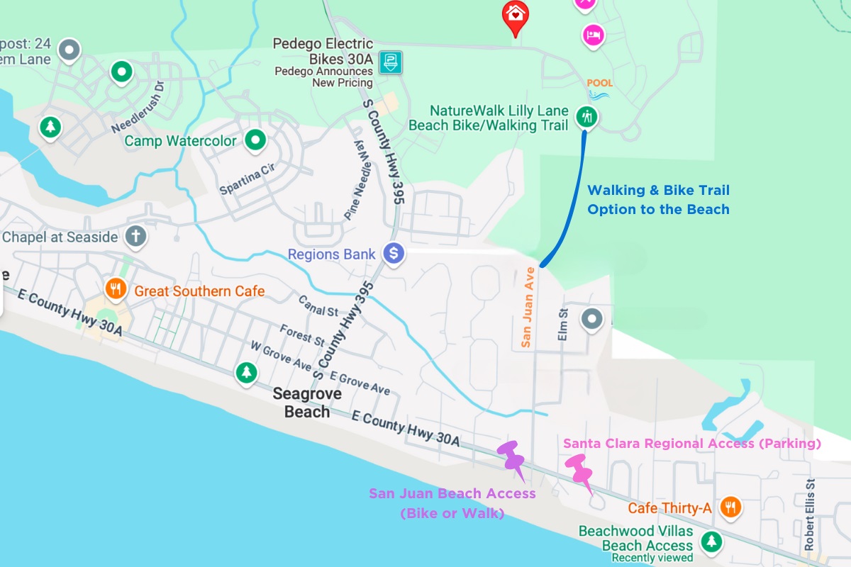 NatureWalk at Seagrove is in the heart of 30A. Adjacent to Watercolor and just minutes from Seaside. With its central location, Beargrass is the perfect spot for your 30A vacation!