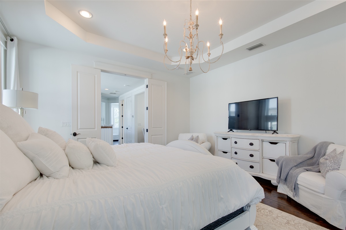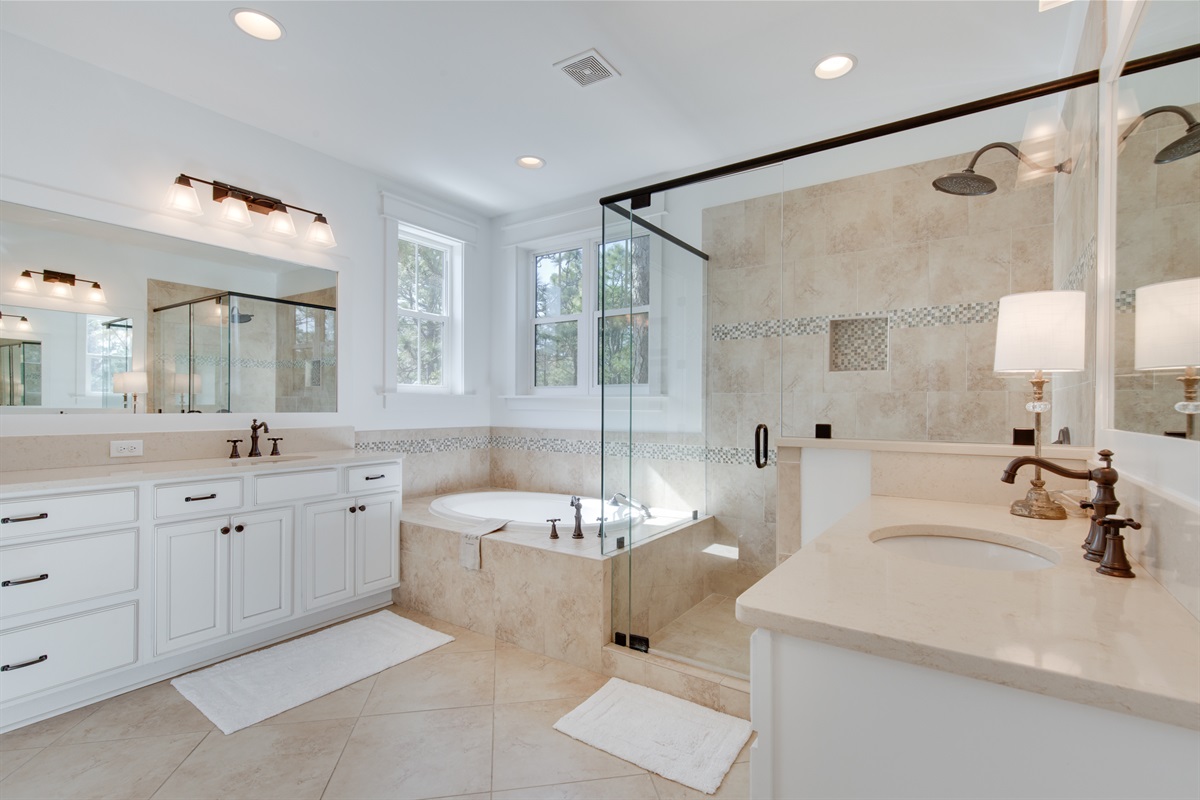 Bedroom 1: King Bed- Private Bath- Shower and Soaking Tub