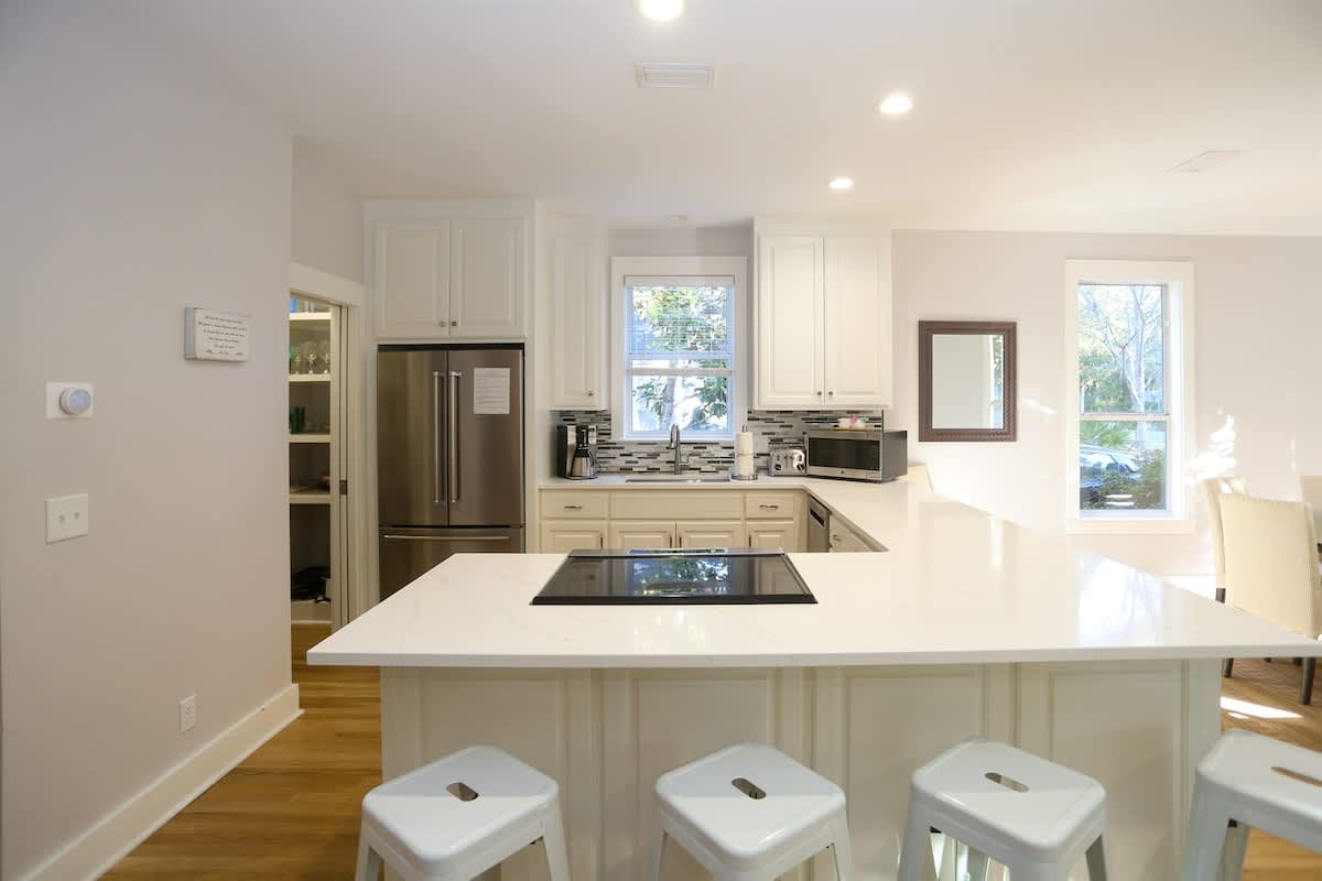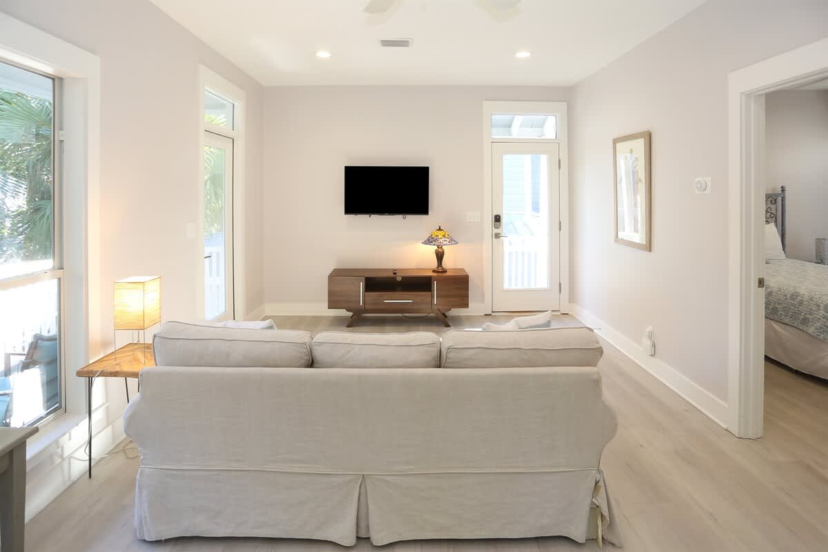 At Last is a luxurious 3-bedroom home plus a full carriage house apartment in the Grove by the Sea community. With sleeping arrangements for up to 9 guests, close proximity to the beach, and access to 2 community pools and a tennis court, Anchor House provides a comfortable and convenient stay on 30A for your entire family!
