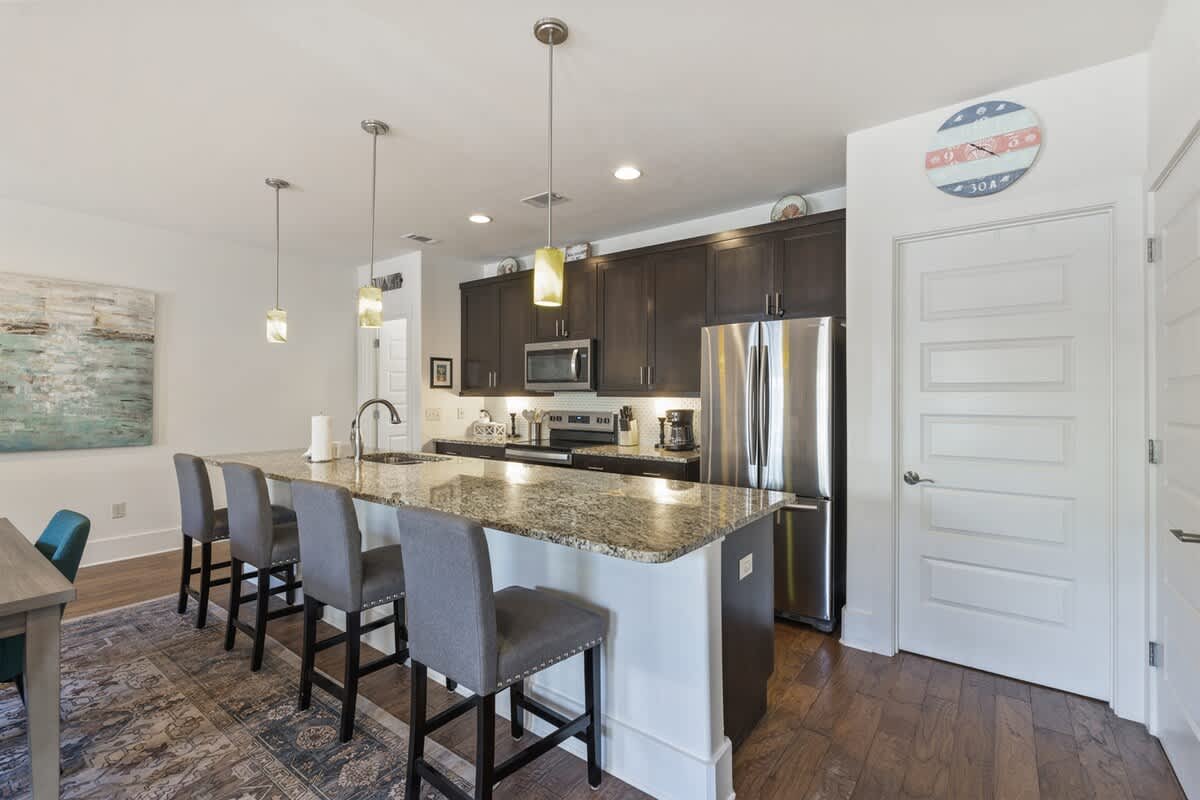 Settle into Beach Nest, a spacious and pet-friendly 4-bedroom, 4.5-bathroom home perfect for your 30A escape. Enjoy two comfortable living areas, a fully stocked kitchen, and the convenience of a community pool. With 4 complimentary bikes, the beach is just a short ride away, and you'll find yourself very close to the vibrant shops and restaurants of Gulf Place.