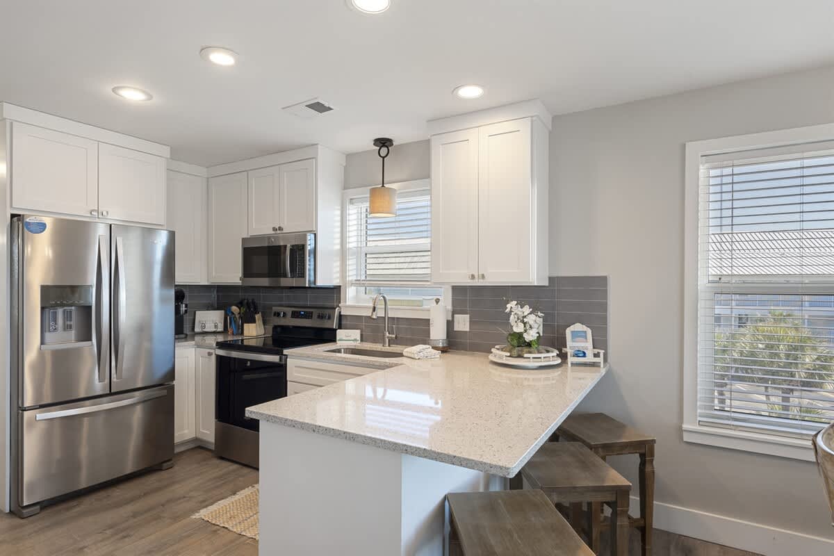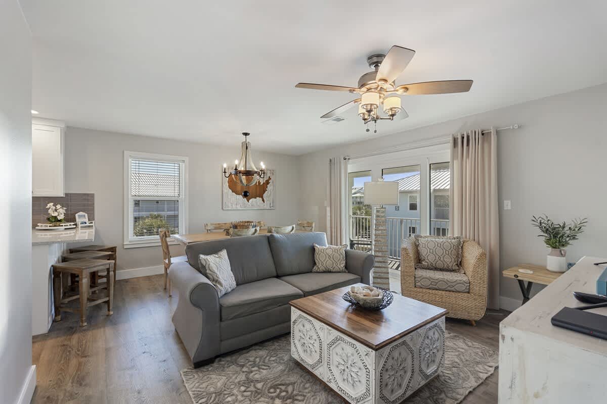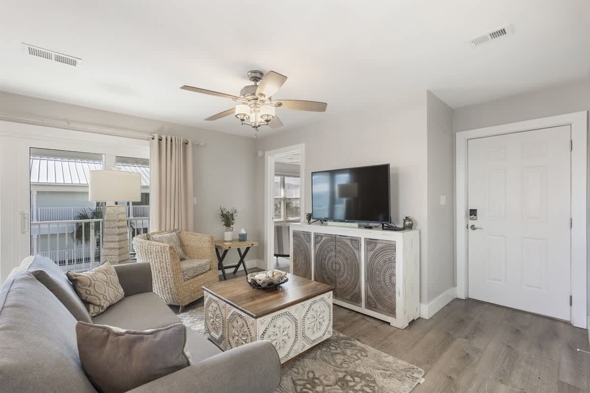 Escape to this newly renovated 3-bedroom, 2-bathroom condo at Beachside Villas! Offering comfortable accommodation for up to 7 guests! Enjoy the convenience of a free tram service to and from San Roy Beach Access, or embrace a leisurely 5-minute stroll to the sand! Relax and unwind by the heated community pool, play a match on one of the two tennis courts, or explore nearby attractions like Seaside and The Big Chill. Inside, you'll find a fully stocked kitchen, washer & dryer, and a large Smart TV for entertainment. With its prime location and convenient amenities, Beach Shak is the perfect home base for your next 30A vacation.