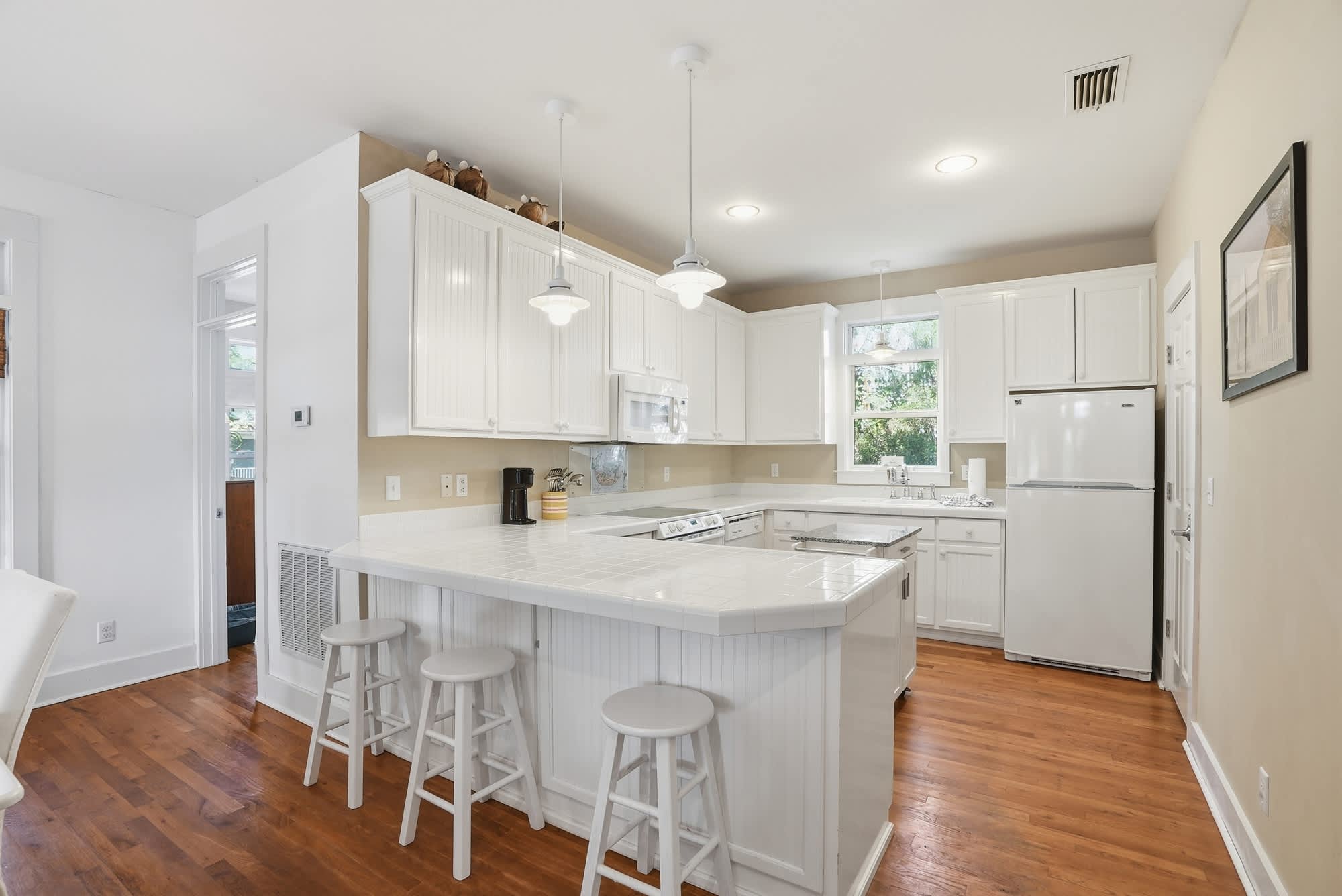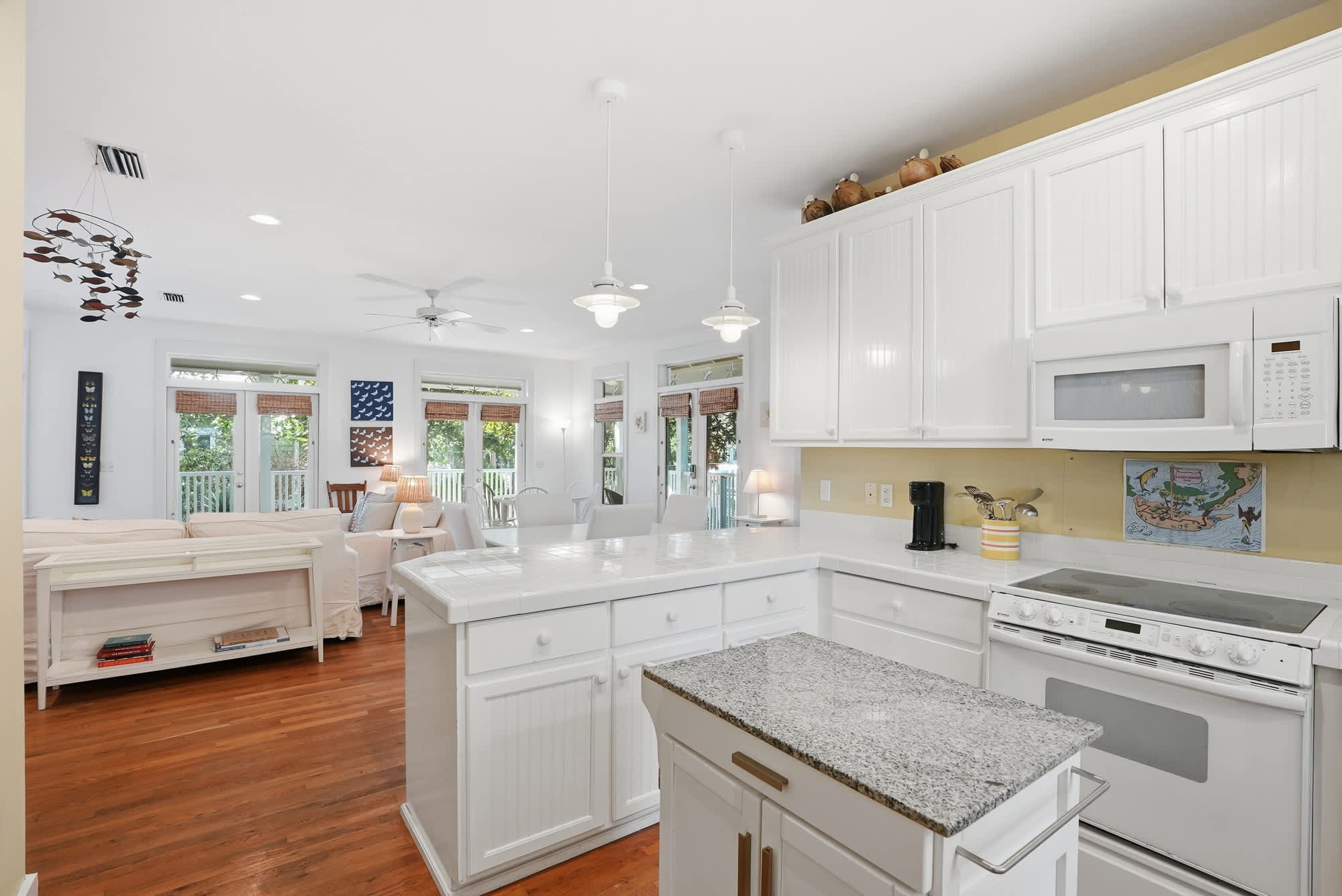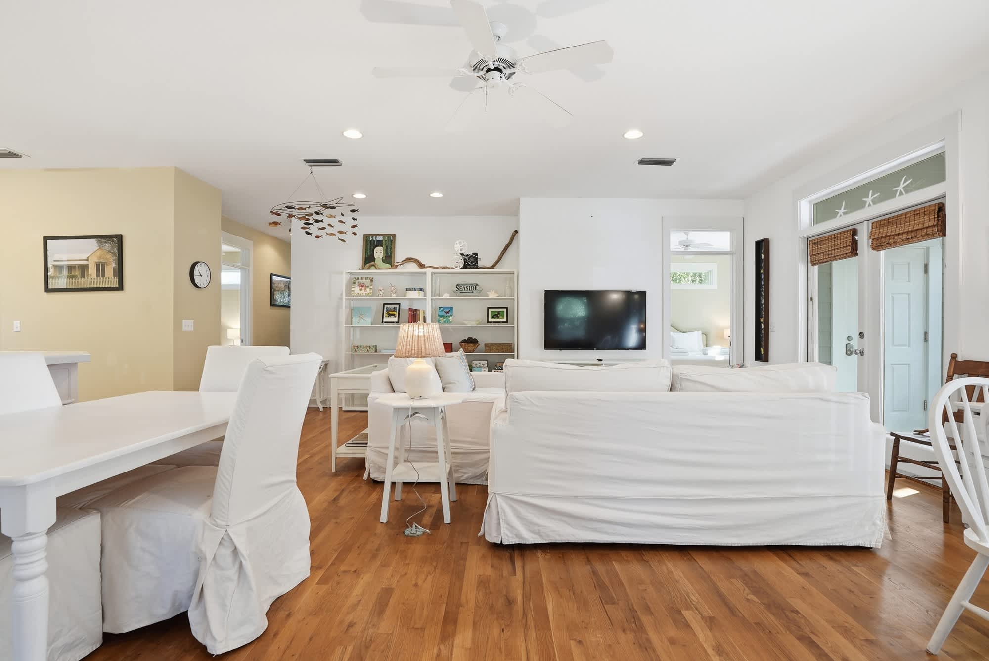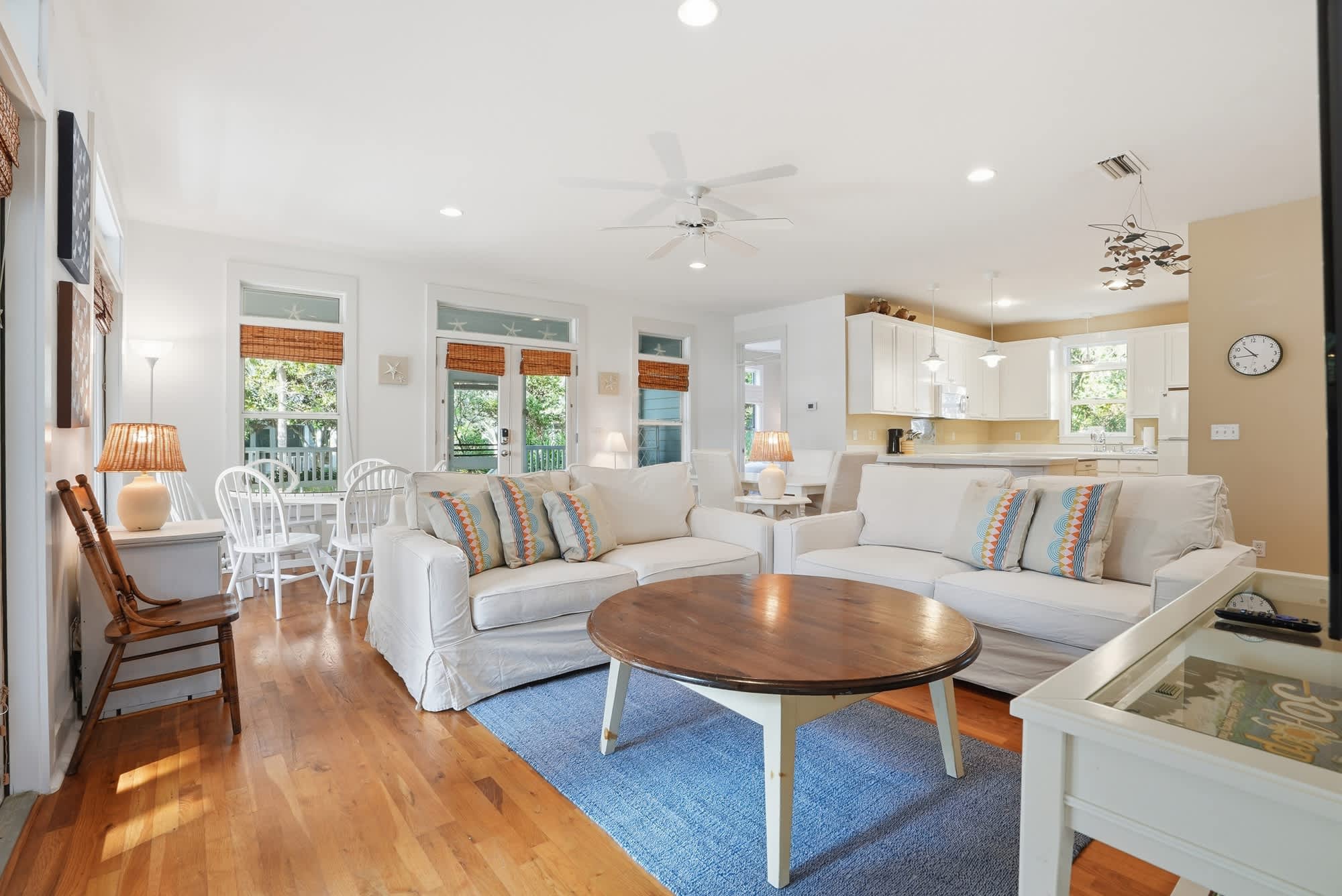 Butterfly Cottage features an inviting open-concept floor plan designed for effortless vacationing. The single-story layout ensures everyone stays connected, from the comfortable living area to the fully equipped kitchen. Whether you’re enjoying a quiet morning on the porch or gathering for a family meal after a day in the sun, this home provides a serene and welcoming environment.