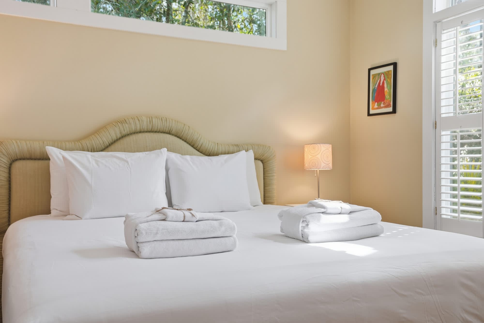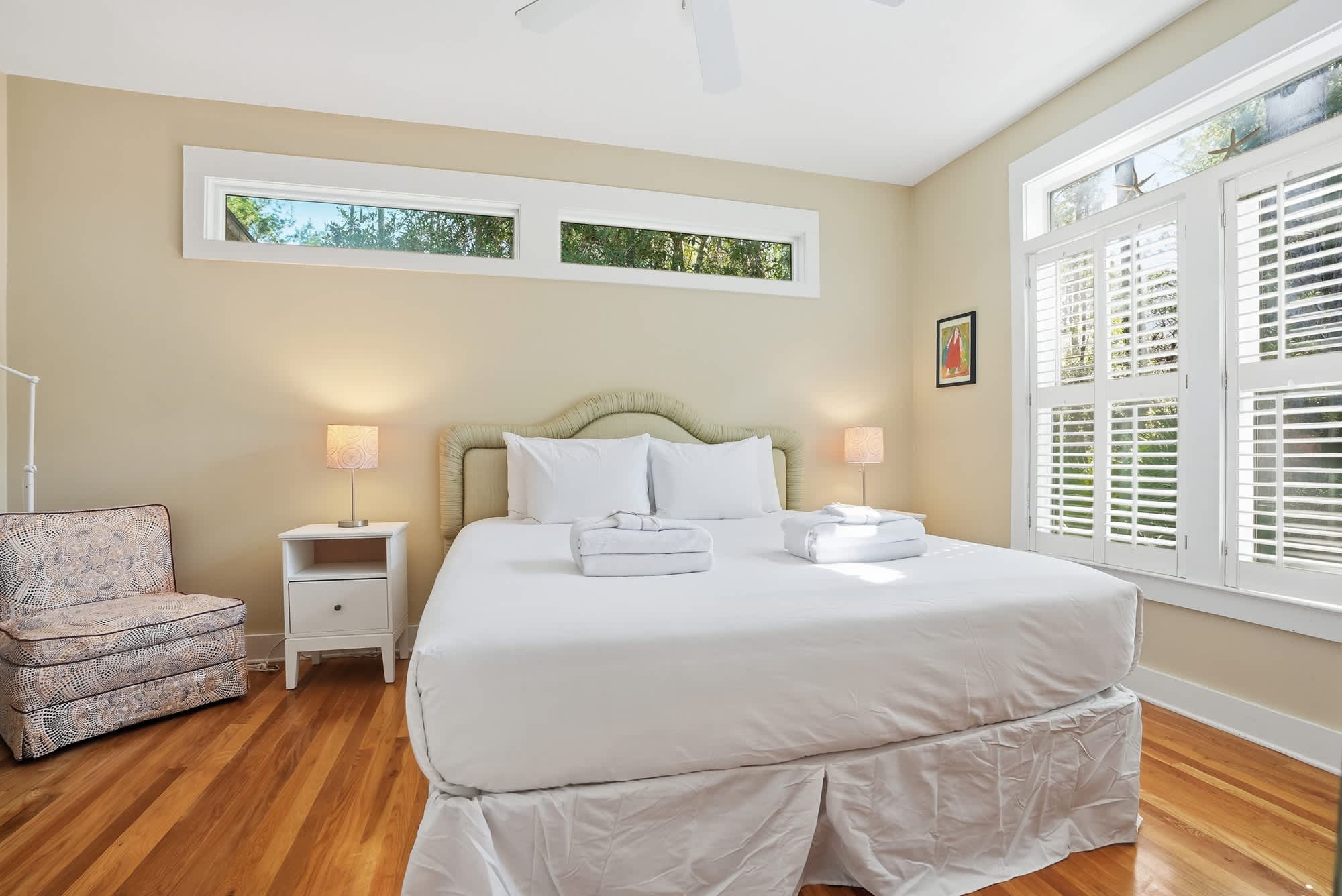 • Guest Bedroom 1 – 1st Floor – King Bed – Shared Hall Bathroom