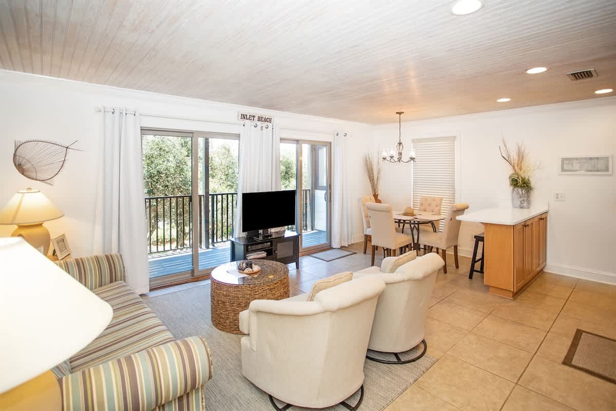 Escape to this cozy 1-bedroom condo in Inlet Beach, perfect for families or friends! Steps from the sand and a short bike ride to Rosemary Town Square, you'll enjoy the best of both worlds. Sleeps 6 comfortably with a king bed, bunks, and a sleeper sofa. Relax by the community pool or soak in the views from your 2nd-floor balcony. Fully equipped kitchen and all the comforts of home await! Book your 30A getaway today!