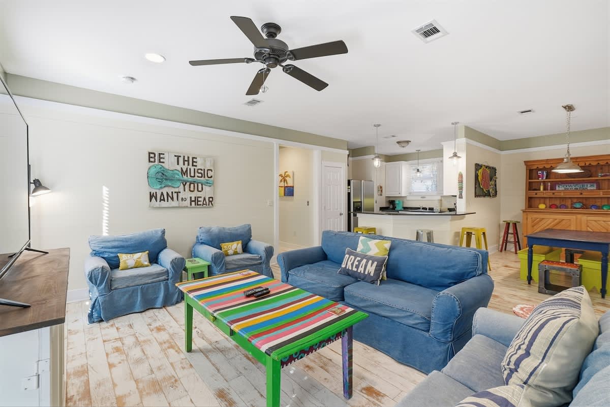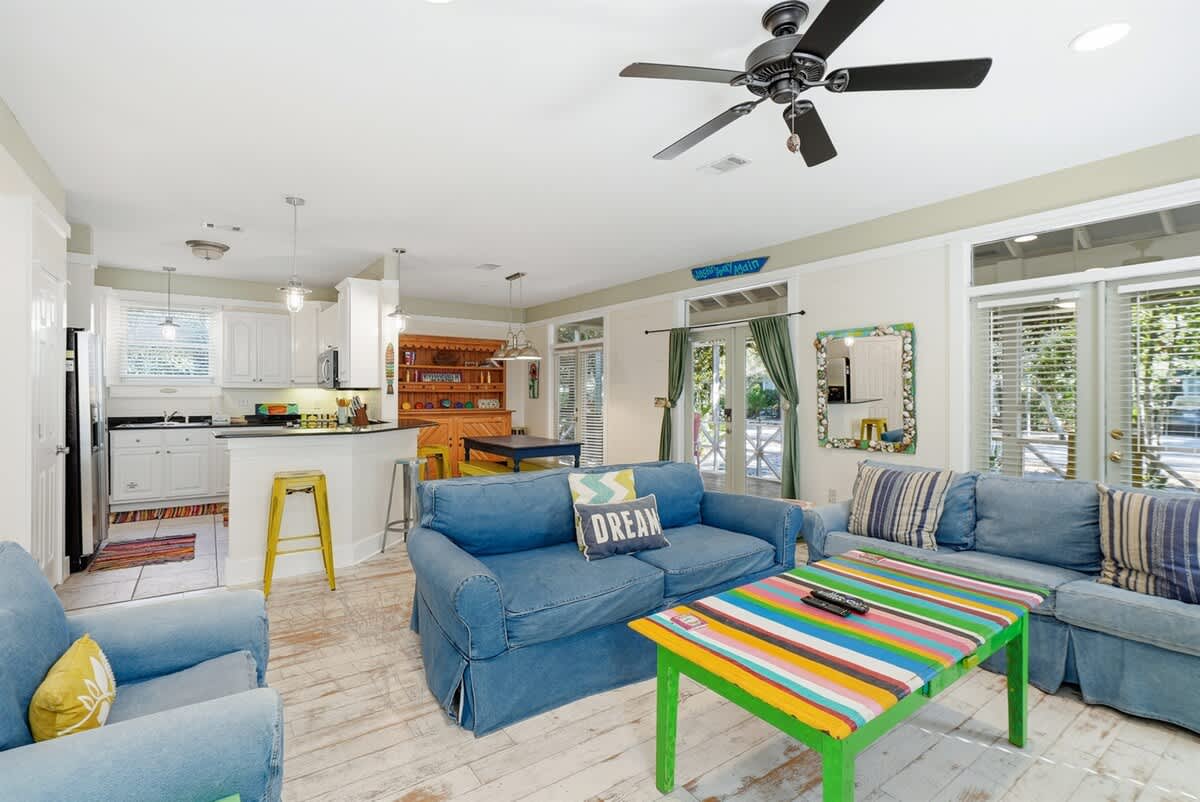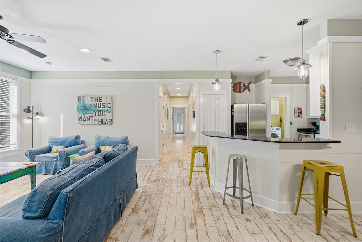 Escape to Duck Duck Goose, a dog-friendly, single-story retreat with a screened-in porch and luxurious primary bath. Enjoy the ultimate convenience of being just steps away from the community pools and the beautiful 30A beach access.
