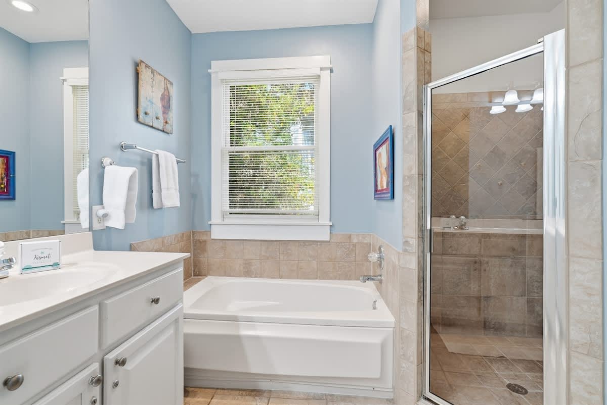 • Primary Bedroom - King Bed - Ensuite Bathroom (Shower and Soaking Tub)