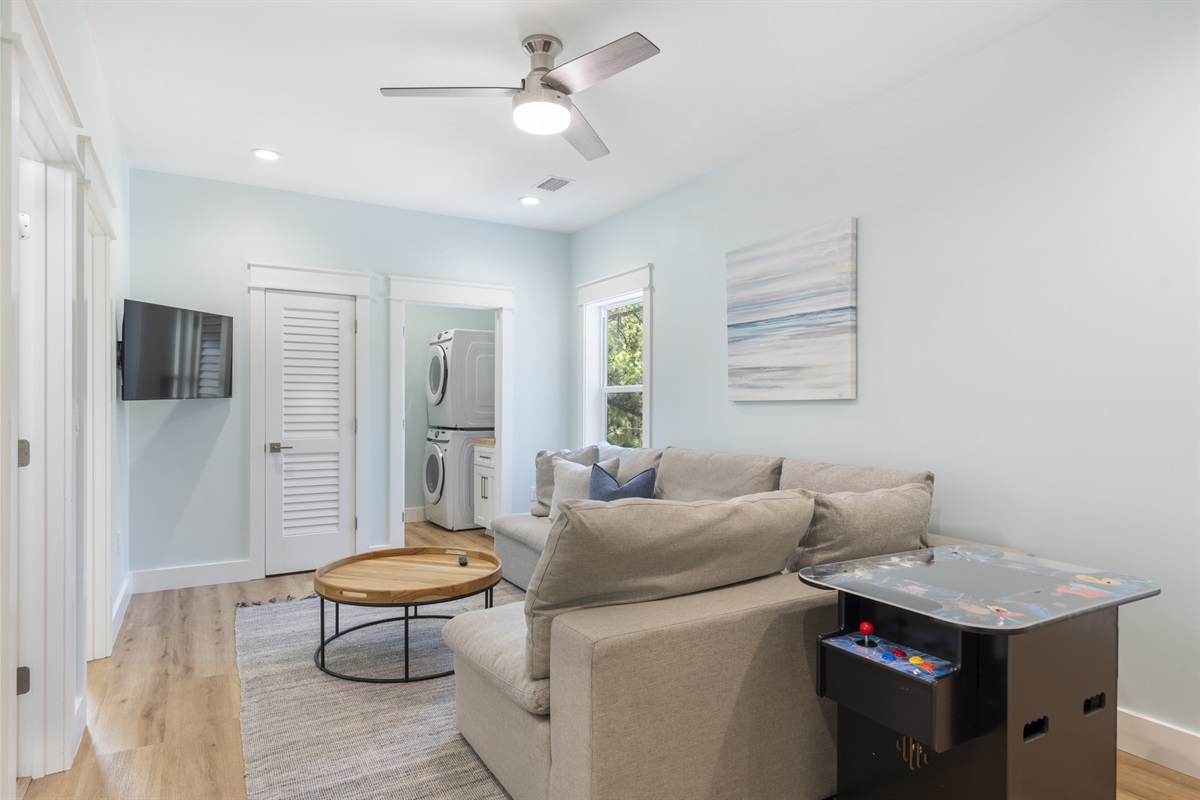This brand-new house sleeps 10 and offers everything you need for the perfect getaway. Enjoy private beach access, a private pool (heated for $50/day), and 4 bikes for cruising along 30A. Relax in two spacious living areas, challenge each other to a game of ping pong or Pacman, and stream your favorite shows on the large smart TV. The fully stocked kitchen and washer/dryer add to your convenience. With four comfortable bedrooms, including two king suites, there's room for everyone to unwind.