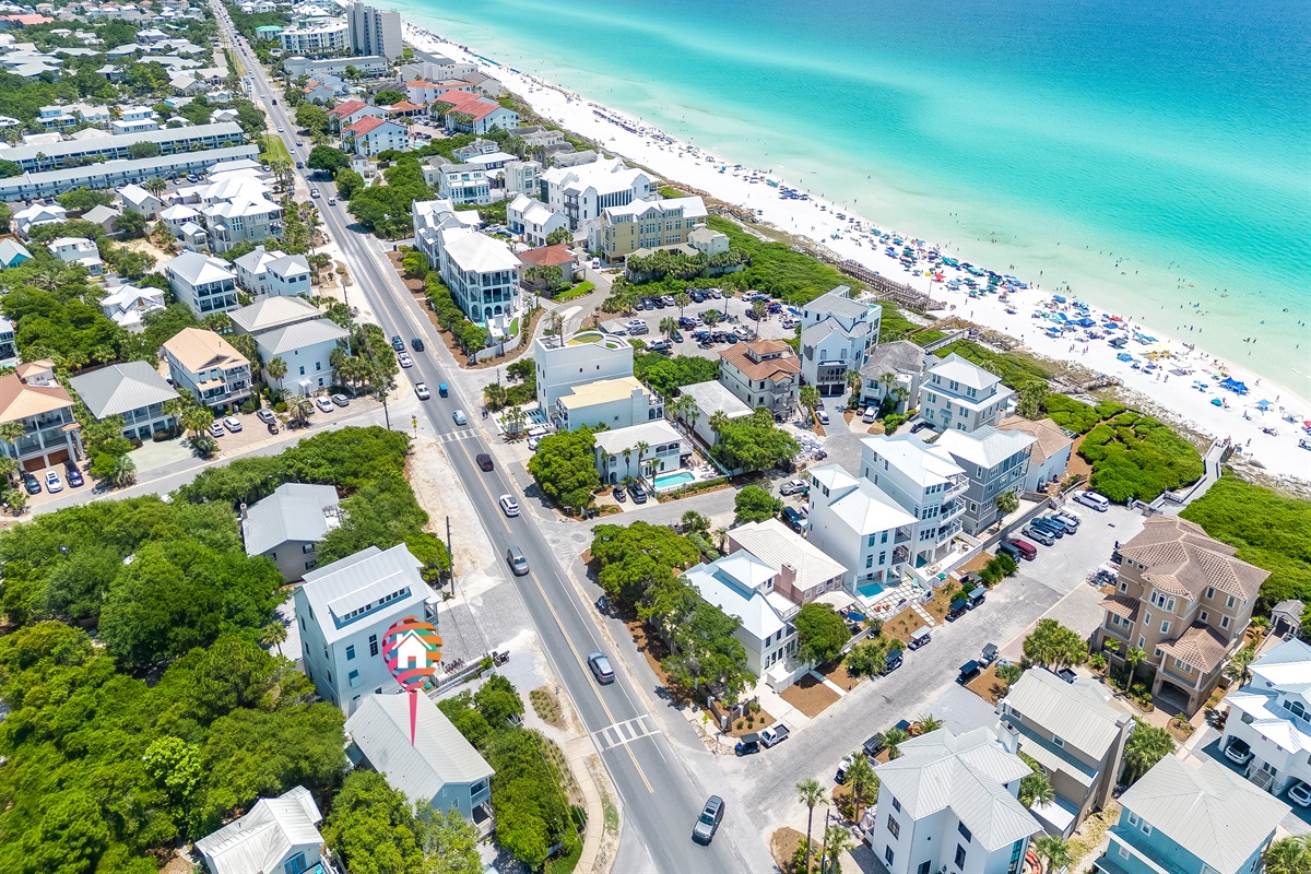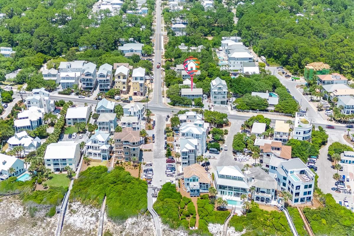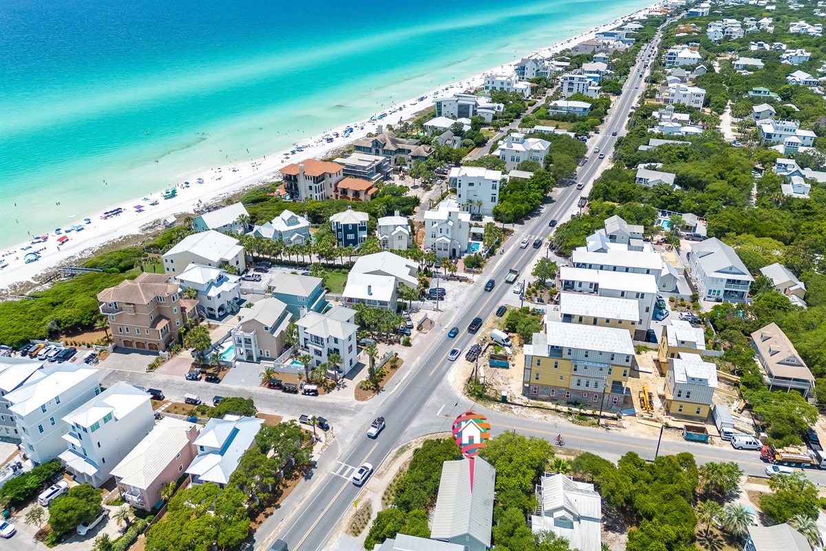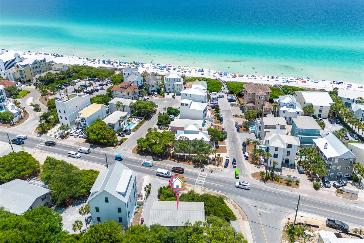 Located on the corner of 30A and San Juan Ave in the heart of Seagrove Beach. Enjoy easy access to the beach, a short bike ride to Seaside, and nearby shops and restaurants.