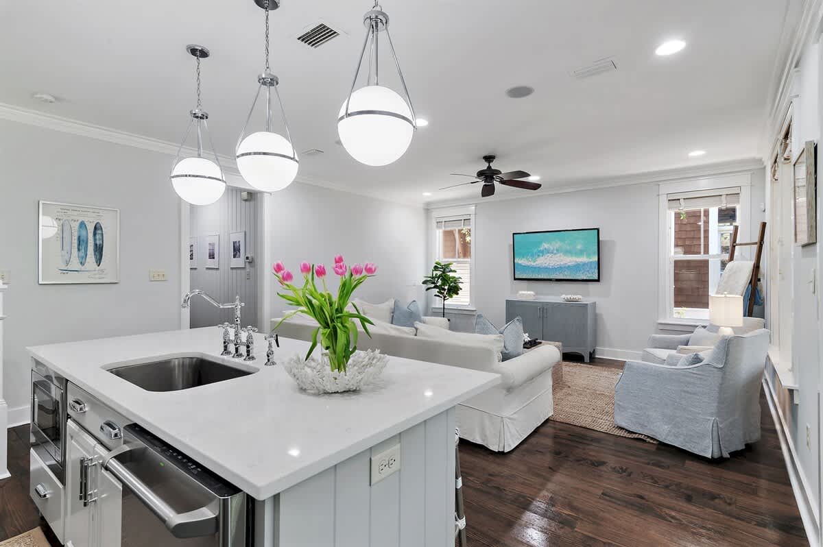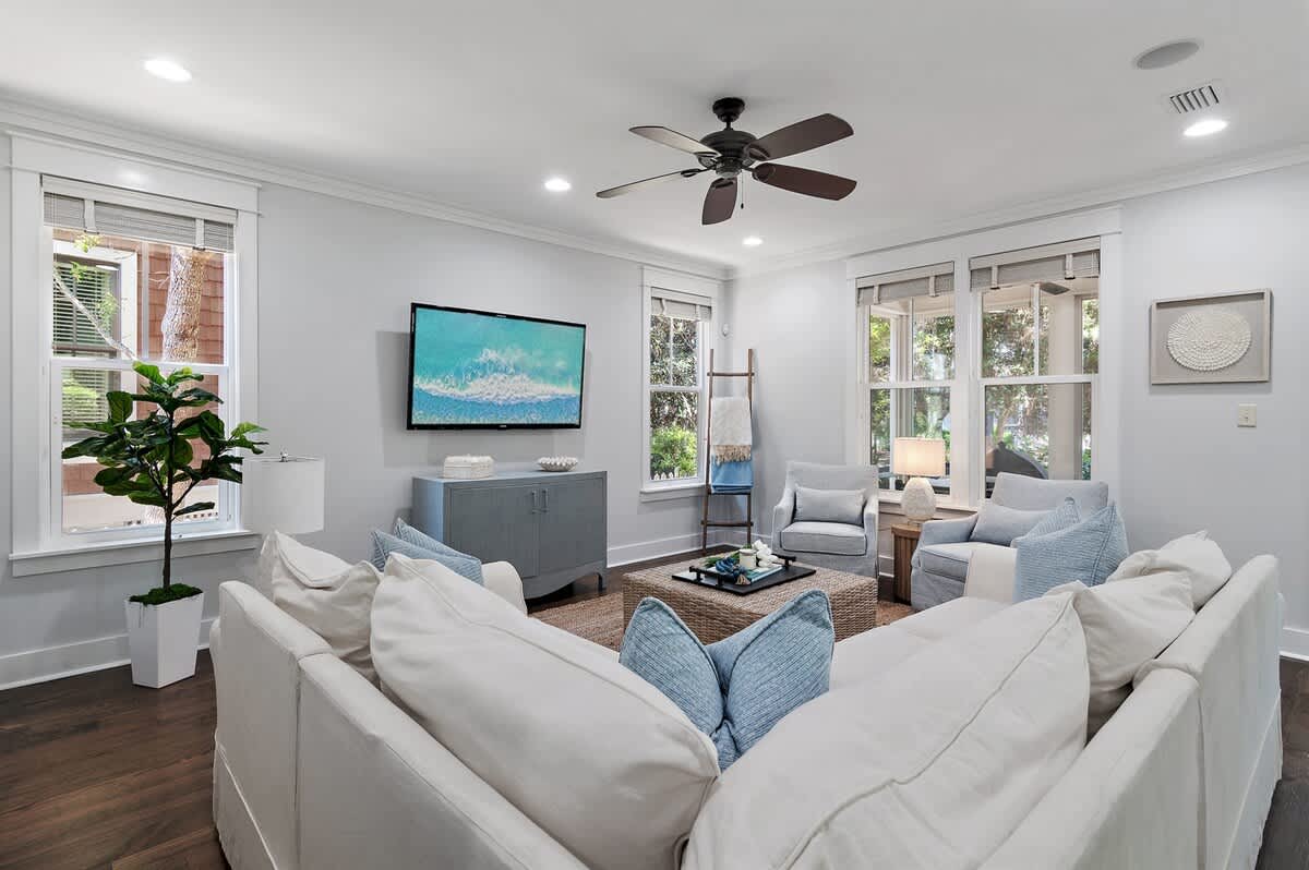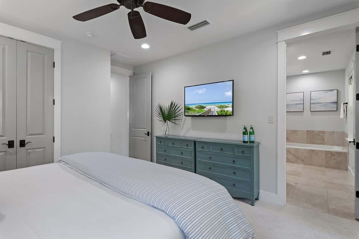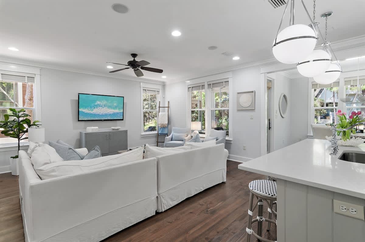 Indulge in a luxurious coastal escape at "New Beginnings," a beautifully updated 3-bedroom, 3-bathroom retreat nestled within the exclusive Watersound West Beach community. This exquisite home offers the perfect blend of comfort and convenience, featuring open-concept living, a private outdoor patio, and access to a stunning resort-style community pool. Whether you're exploring the scenic trails on the four complimentary bikes or lounging on the sugar-white sands via the private boardwalk, this home provides a tranquil haven in the heart of 30A.