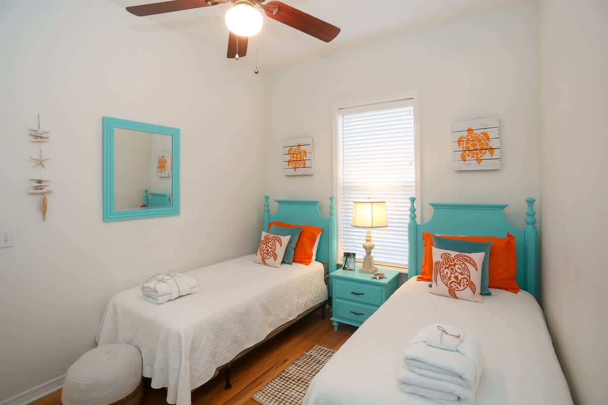 • Bedroom 2 (1st Floor): 2 Twin Beds- Hall Bath- Shower/Tub