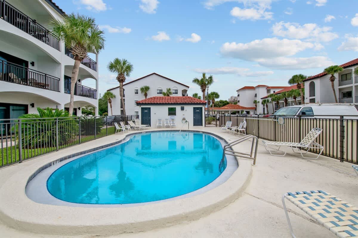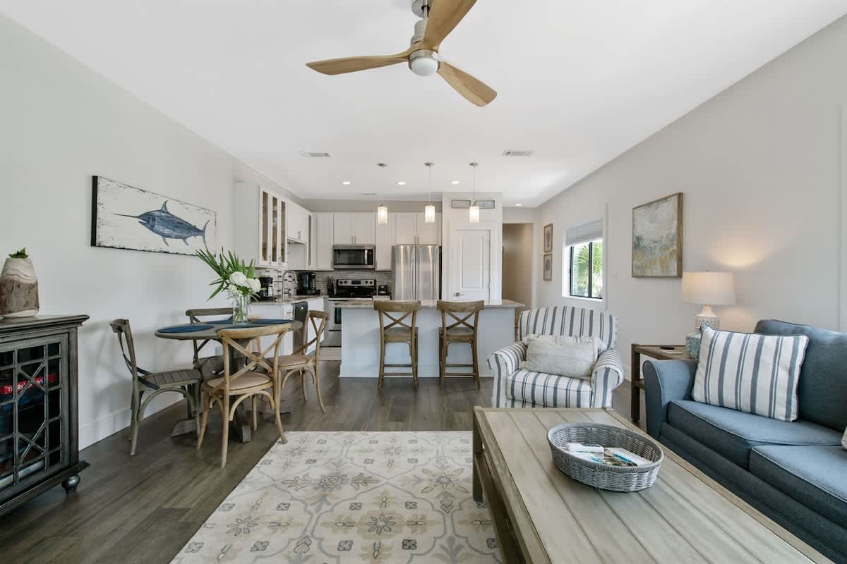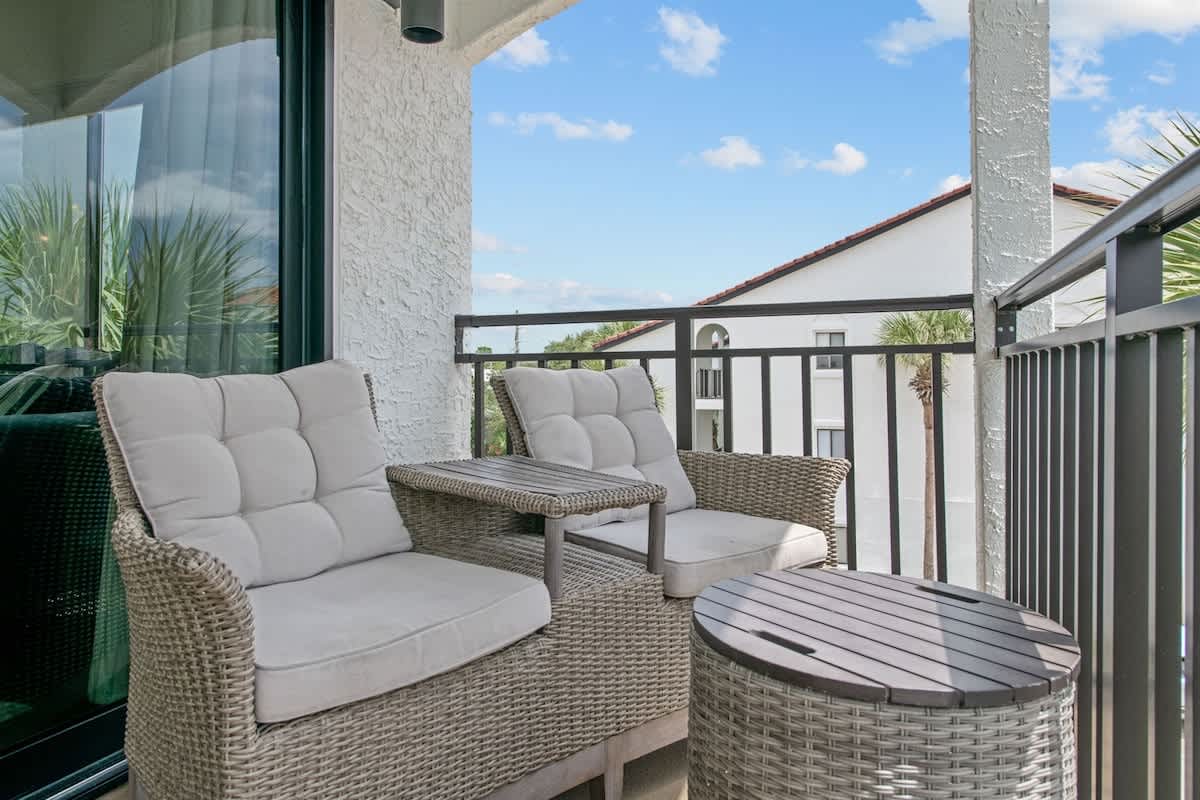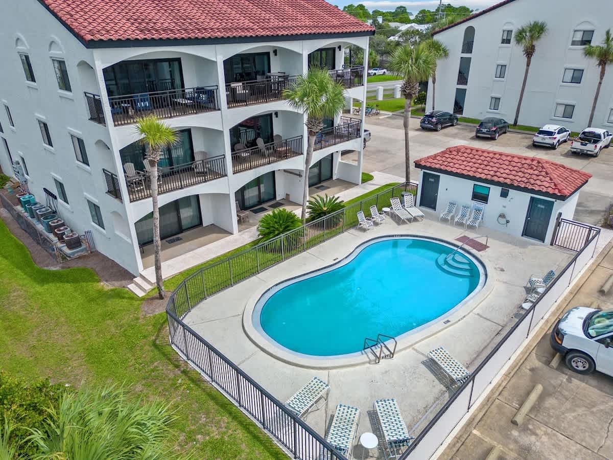 Welcome to Palms B7 by Kismet Properties of 30A! This charming third-floor unit offers a cozy retreat with one bedroom, custom-built bunks, a pullout sofa, and two full baths. Enjoy your private balcony in this newly renovated space, featuring an upgraded kitchen and custom-built bunk beds.