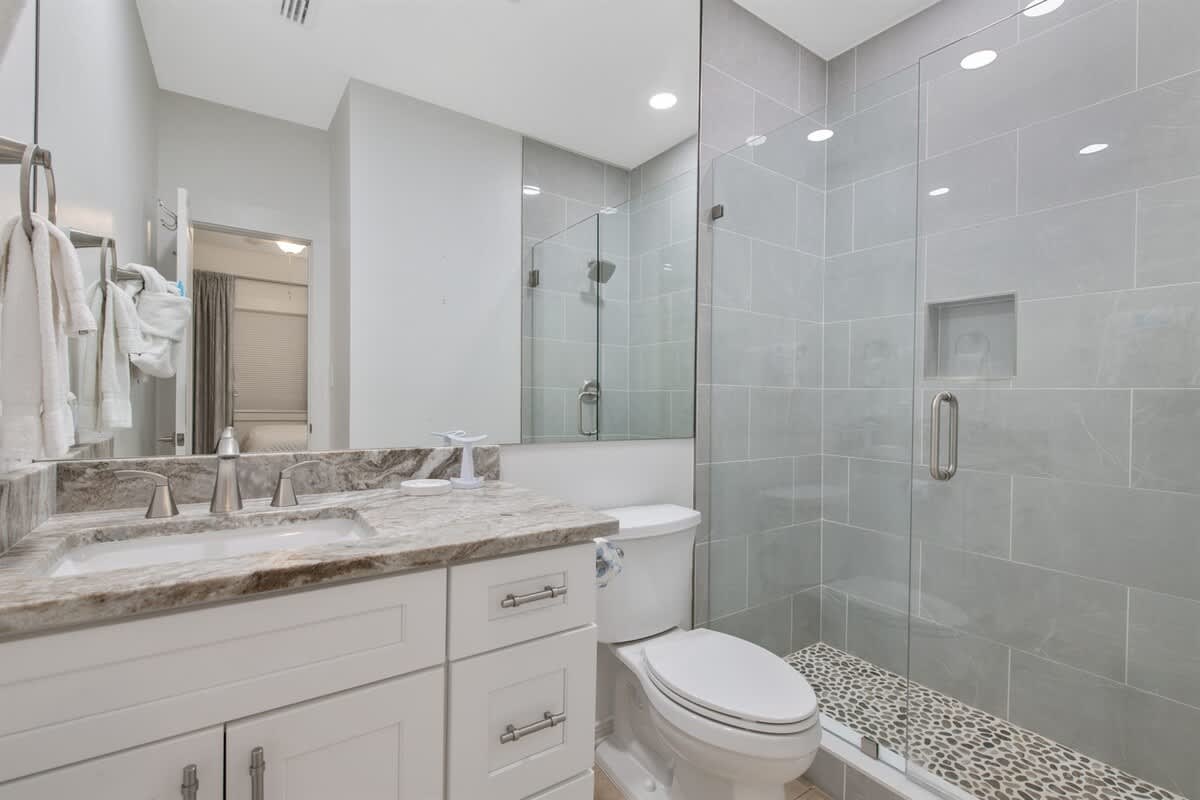 • Bedroom 1: King Bed- Private Bath- Shower