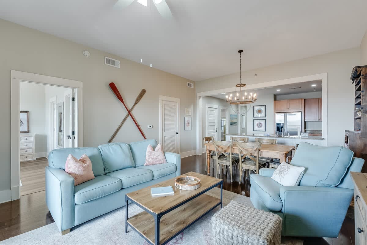 Redfish Village sits in the heart of Blue Mountain Beach, giving you direct access to the private beach and Redfish Lake. Scenic Highway 30A offers an array of shops, restaurants, and trails within walking distance, so you can spend your days exploring by foot or bike. Parking for two vehicles and elevator access make coming and going simple, and a keyless entry system allows for smooth self check-in with a unique code.