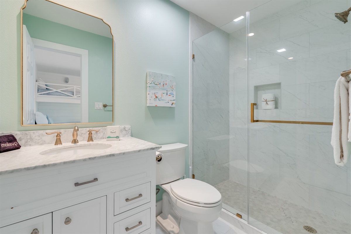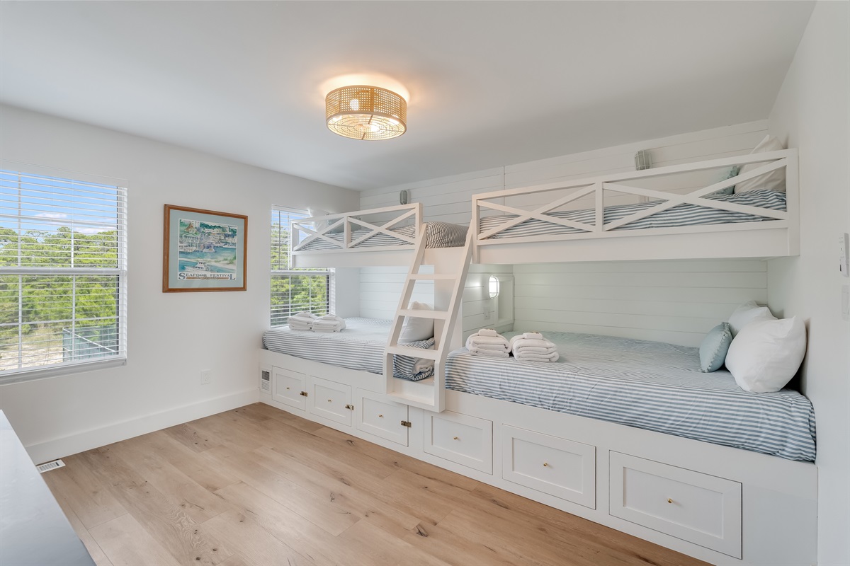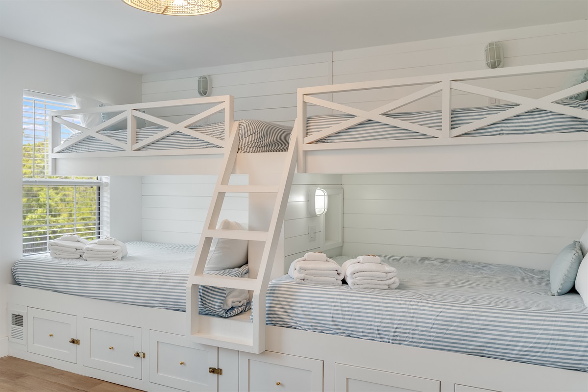 • Bedroom 2 (Top Floor)- Two Twin-over-Double Bunk Beds – Private ensuite bathroom with walk-in shower