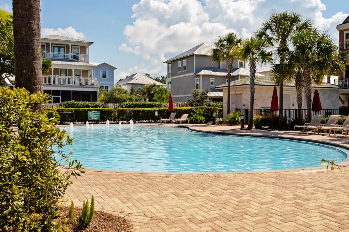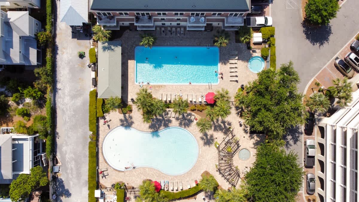 Step outside to your private patio and take in views of 30A. Just beyond your door, enjoy two community pools, a hot tub, and landscaped spaces perfect for unwinding. Seacrest’s private beach access is close by, and a free tram makes reaching the white sands simple. Whether you prefer to relax poolside or spend hours on the shoreline, outdoor spaces are always within easy reach.