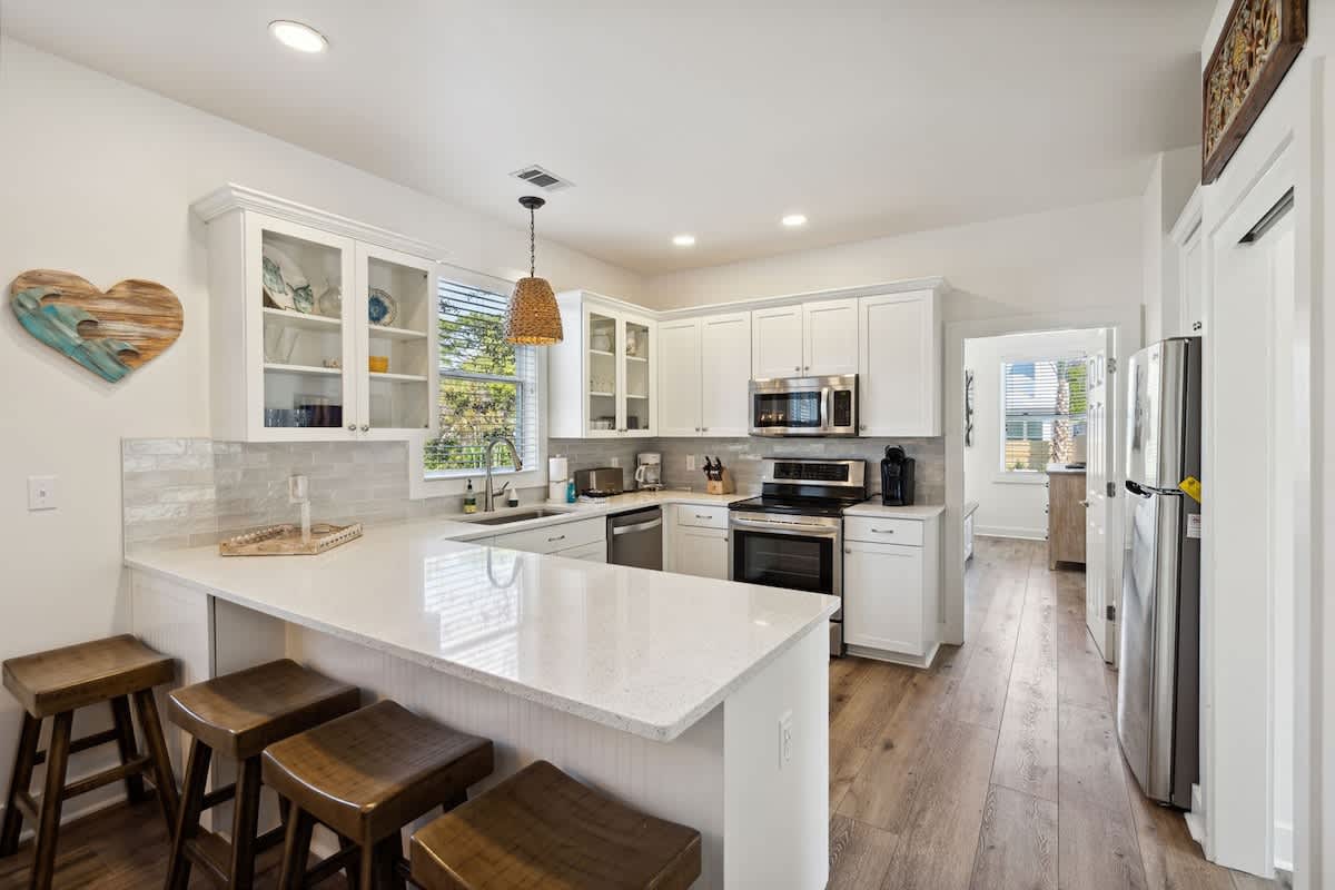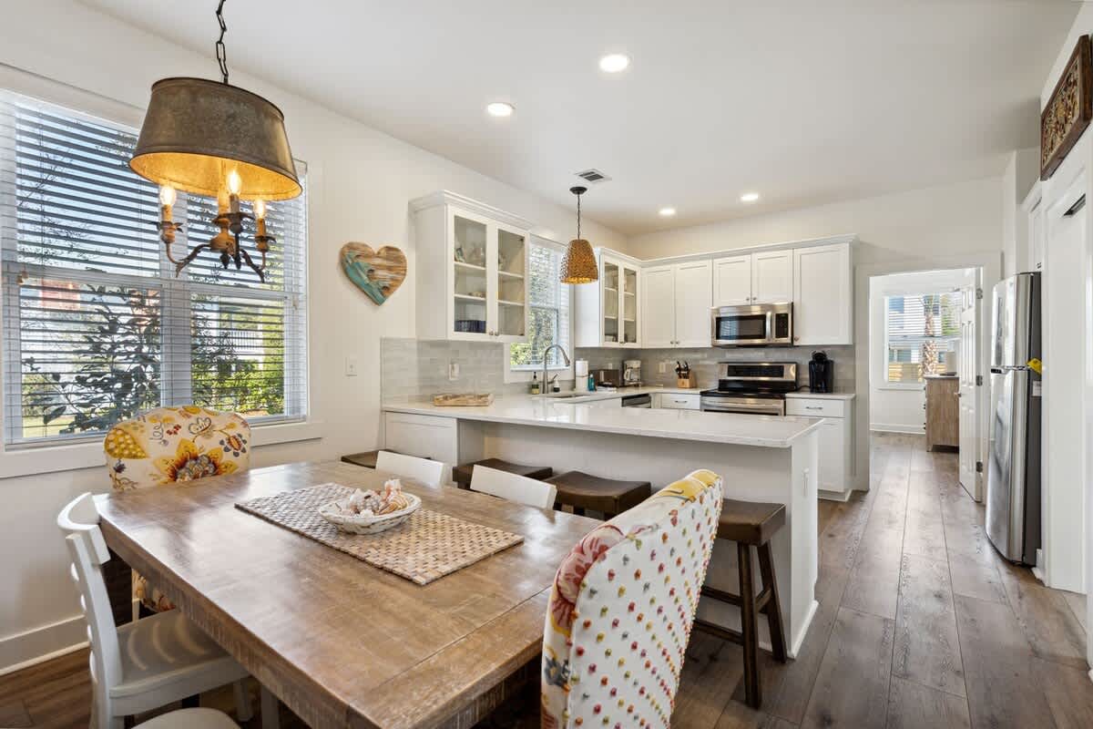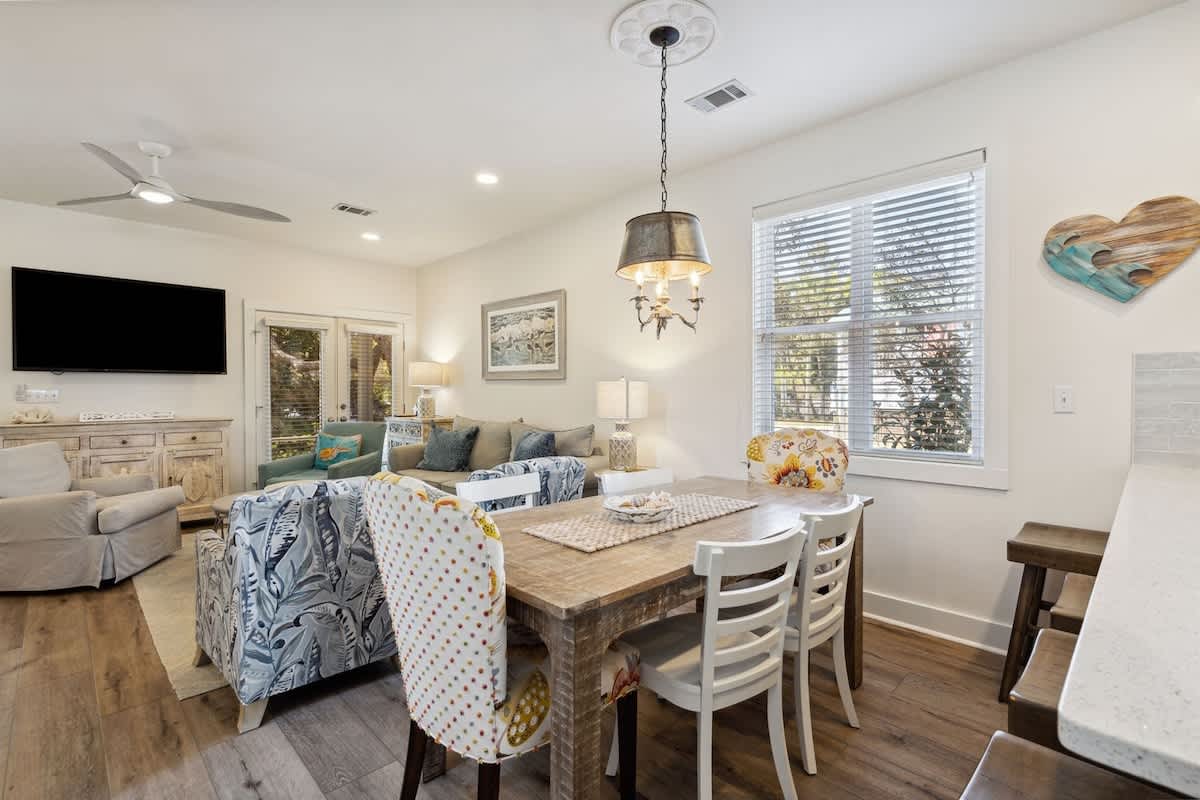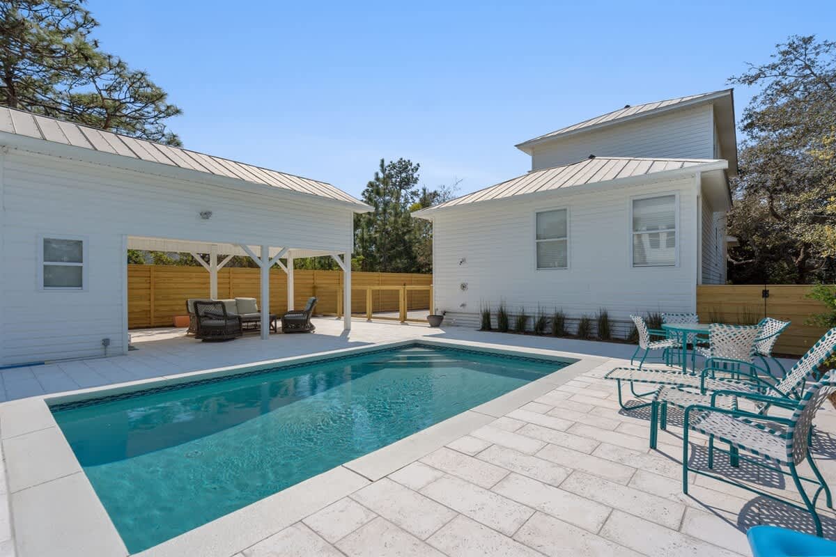 Escape to the 30A lifestyle at Seas The Moment, our updated 3-bedroom, 3-bath home with a private pool! Enjoy a short stroll to the beach and bask in the newly remodeled interiors, complemented by a great outdoor space featuring a private pool.