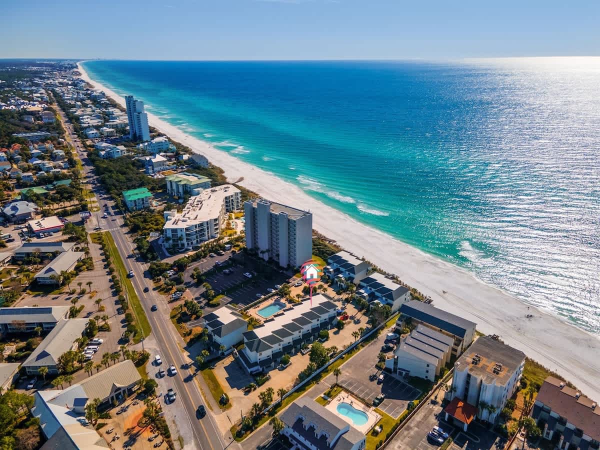 Located in the highly desirable Emerald Hill Condo complex on the south side of 30A in Seagrove Beach. Enjoy easy access to Seaside, local restaurants, shops, and the beautiful emerald waters of the Gulf of Mexico. Miles of paved bike/walk/jog paths are located directly in front of the community entrance.